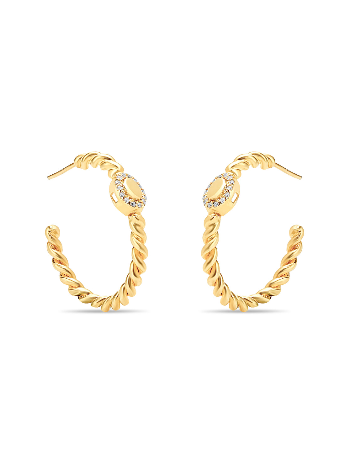 The Hypno Hoop Earrings are elegantly braided hoops featuring a central oval shape adorned with...