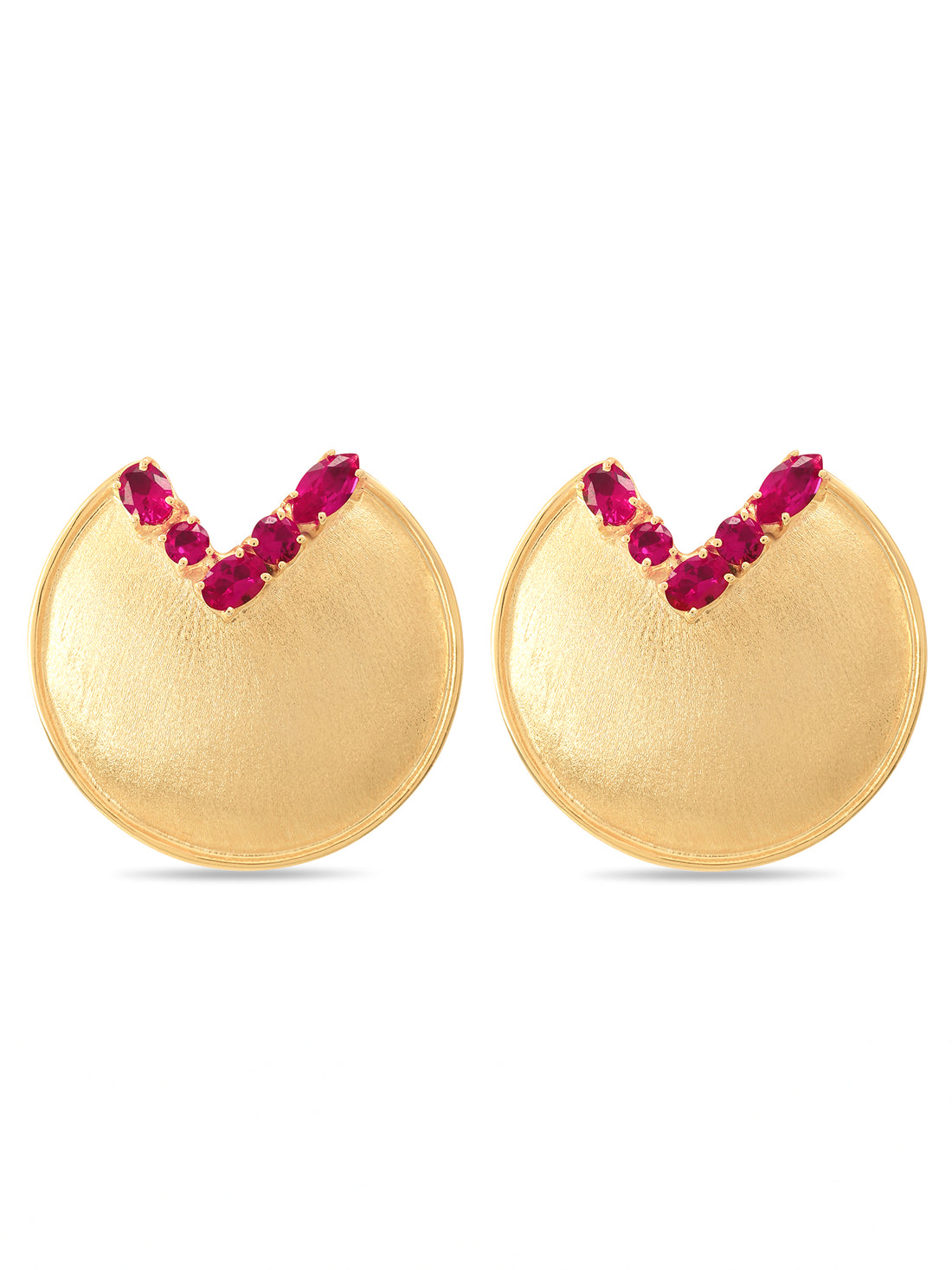 The "Grand Central" Earrings feature a round shape with an upper V design, adorned with...