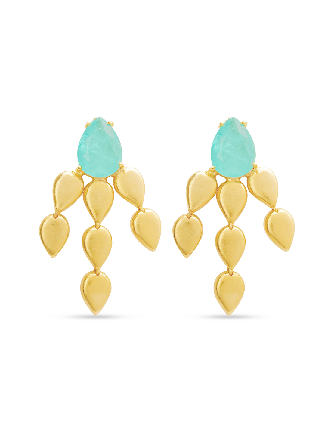 The design features a stunning pear-shaped Mint-colored gem, suspended from a graceful cascade of golden...