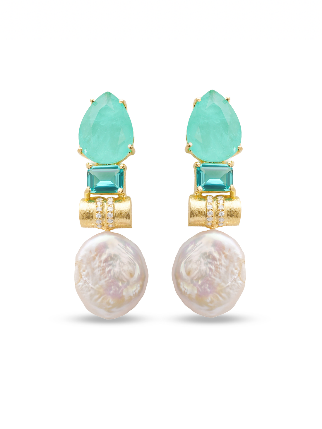 The Sunlit Drops Earrings are truly one of a kind, featuring pear-shaped drops with dangling...