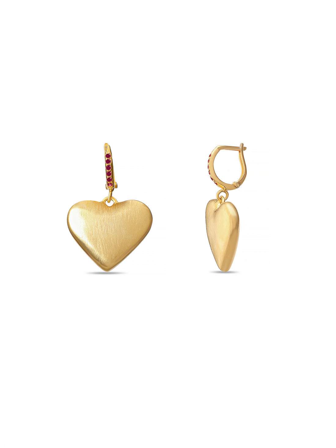 The "Heart of Enigma" Earrings feature a stunning 3D heart design in gold, accented with...