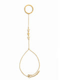 A celestial-inspired hand chain that captures the quiet shimmer of a night sky. Three star charms, two delicately set with zirconia, trace across the hand in a constellation-like pattern, catching light with every movement. The chain connects seamlessly to a burn-finish ring, its soft glow contrasting the polished stars for a balance of texture and shine. Radiant yet understated, this piece embodies the beauty of light meeting touch
