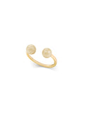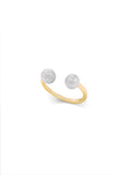 An open-top ring crafted from 925 sterling silver, designed with a clean, sculptural silhouette that wraps smoothly around the finger. The polished band is dipped in 18k gold, creating a refined contrast against the textured snowball details. Each open end is finished with a grain-textured snowball sphere, designed to reflect light with a soft, delicate sparkle.